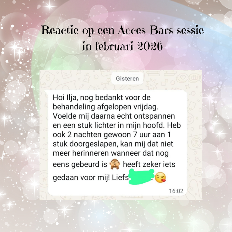 Acces Bars gaan over alle beperkende overtuigingen, oordelen, ideeën, gedachten, houdingen, beslissingen die je hebt gecreëerd over verschillende aspecten van je leven. Zoals heling, vreugde, verdriet, geld, creativiteit, vrede, kalmte, dankbaarheid.